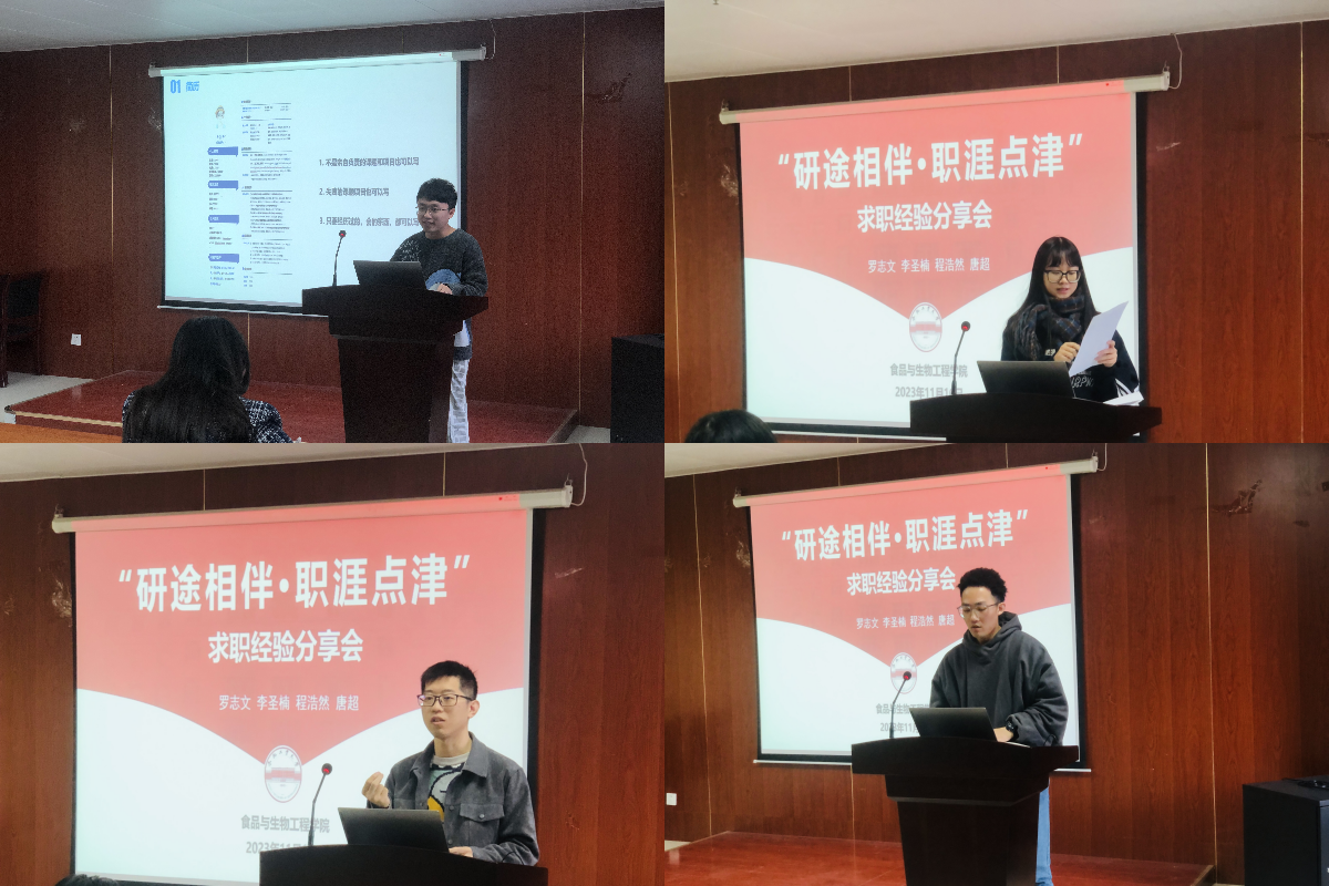 11月16日下午,365电子娱乐官方网站在食生楼206会议室举办了“研途相伴,职涯点津”求职经验分享会。会议邀请了罗志文、李圣楠、程浩然和唐超四位同学为求职学生指点迷津。讲座由学院研究生辅导员张倩主持,学院2021级未就业研究生参会。讲座伊始,主讲嘉宾罗志文从简历制作、就业渠道、咨询方法、面试技巧四个方面介绍了求职技巧。李圣楠从自身求职过程中遇到的问题出发,指出简历的制作要有针对性,要突出个人优势以及潜力,在...
