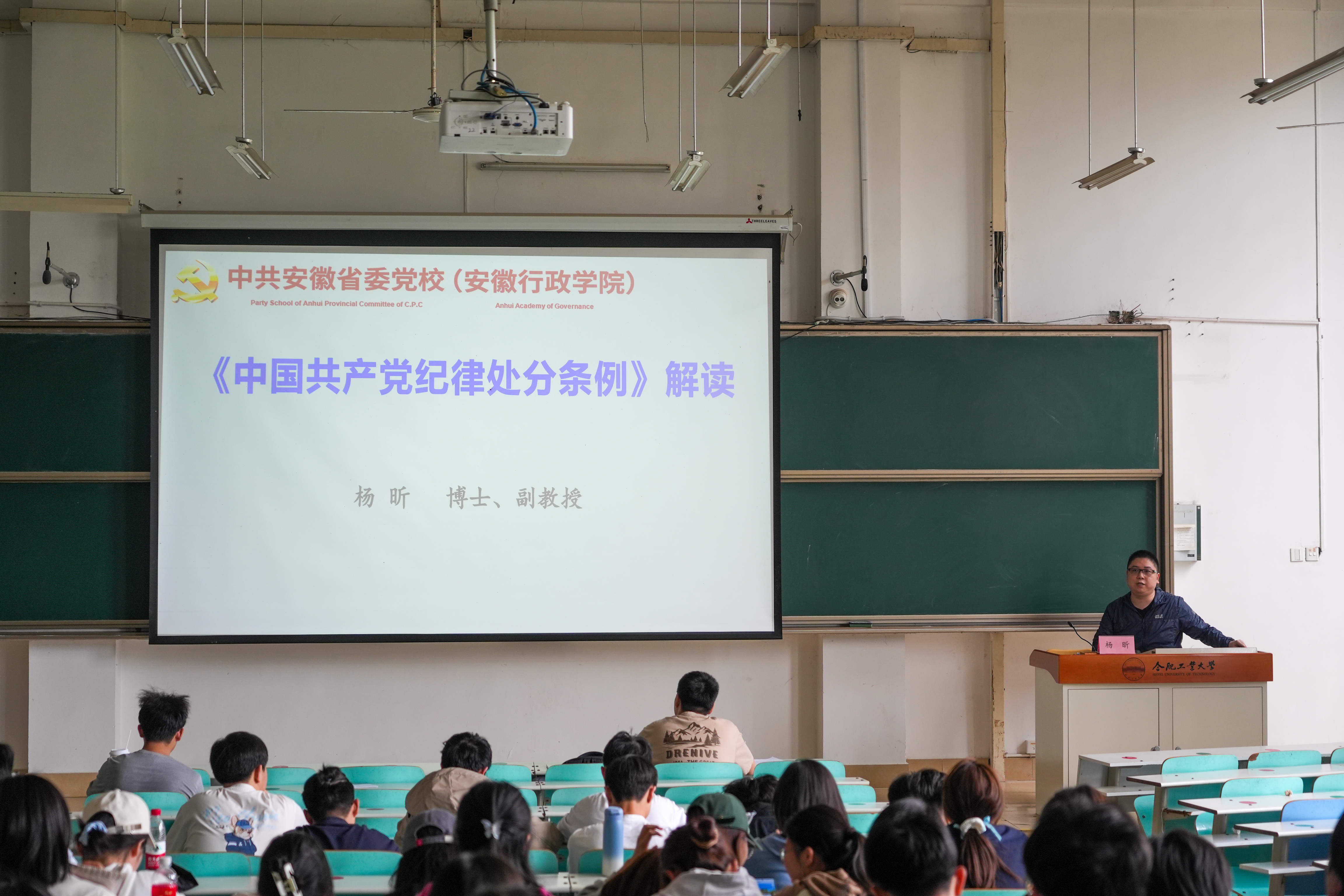 4月20日下午14:30,365电子娱乐官方网站在翠一教102,举办第五期廉洁文化大讲堂暨第71期入党积极分子班第三次党课,省委党校(安徽行政学院)副教授杨昕对《中国共产党纪律处分条例》进行详细解读。党课由入党积极分子班班主任努尔比耶姆主持,第71期发展对象班、入党积极分子班全体学员和全体学生党员参加。党课中,杨昕围绕廉洁自律是共产党员立身之本,守住底线、不越红线、远离高压线和如何做到洁身自好等方面展开授课。他表...