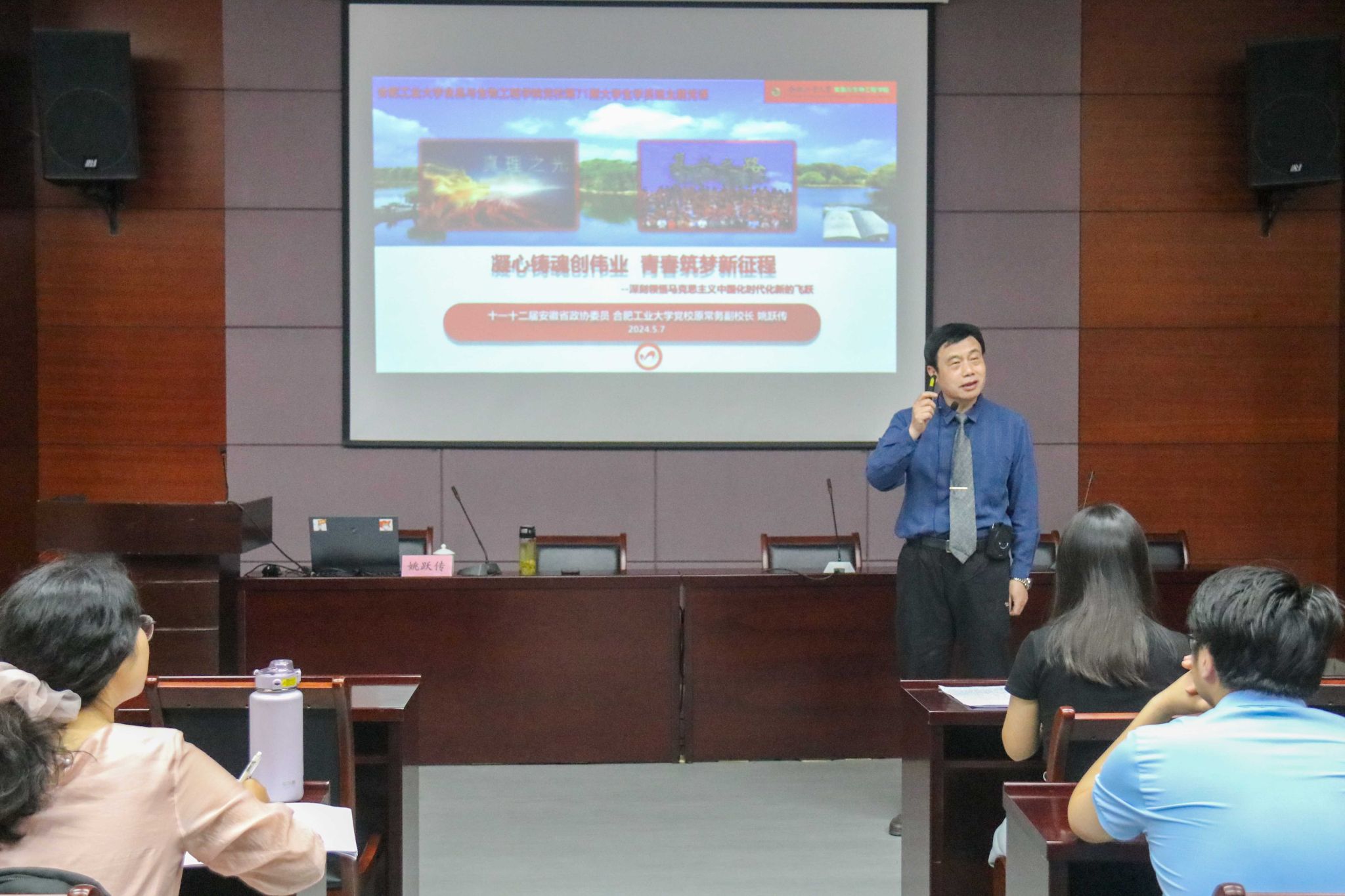 5月7日,365电子娱乐官方网站分党校第71期入党积极分子班在科教楼A座第五会议室开展专题党课,本期党课由十一十二届安徽省政协委员、合肥工业大学党校原常务副校长姚跃传主讲。姚跃传作了题为《凝心铸魂创伟业,青春筑梦新征程--深刻领悟马克思主义中国化时代化新的飞跃》的报告。姚跃传讲述了习近平新时代中国特色社会主义思想创立的时代背景、实践基础与历史地位,特别是党的十八大以来,以习近平同志为核心的党中央审时度势、...