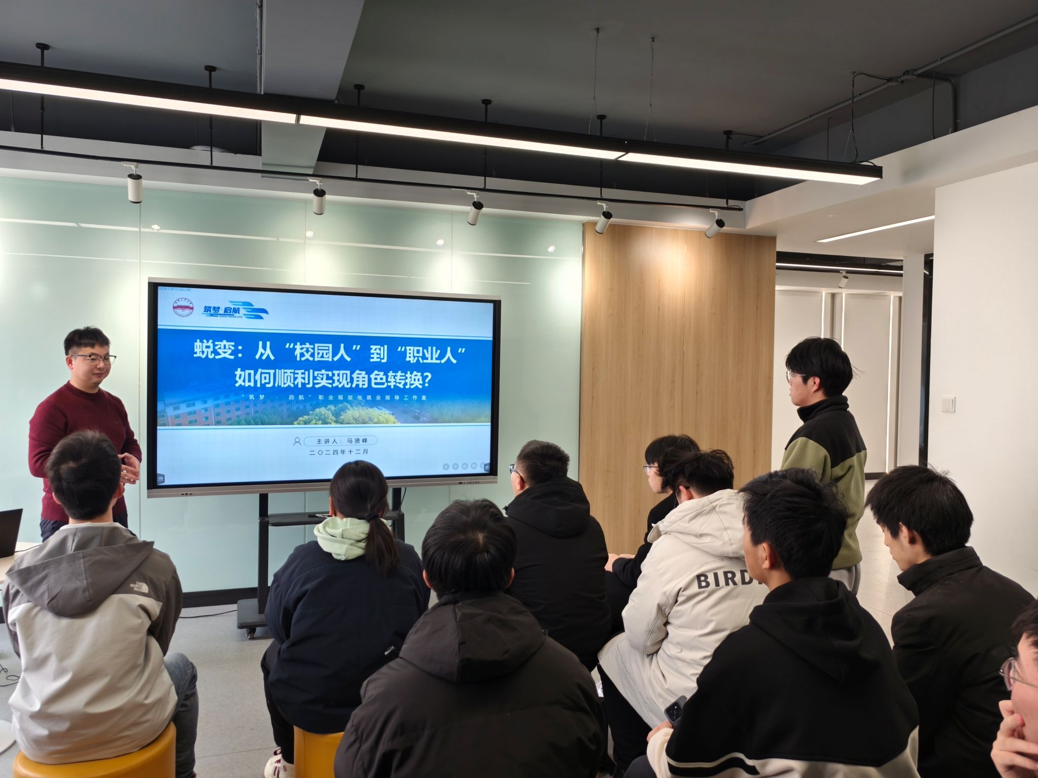 12月19日下午,校党委学生工作部(处)“筑梦·启航”职业规划与就业指导工作室在翡翠湖校区二号学生社区,举办第四期“筑梦课堂”职业规划与就业指导系列讲座。工作室成员、材料学院学工办副主任兼团委副书记马贤峰受邀担任主讲,讲座题目为“蜕变:从‘校园人’到‘职业人’如何顺利实现角色转换?”,全校学生共30参加活动。马贤峰围绕职场角色转换、初入职场面临问题、角色转换途径和方法以及如何适应职场做职场主人等四个方...