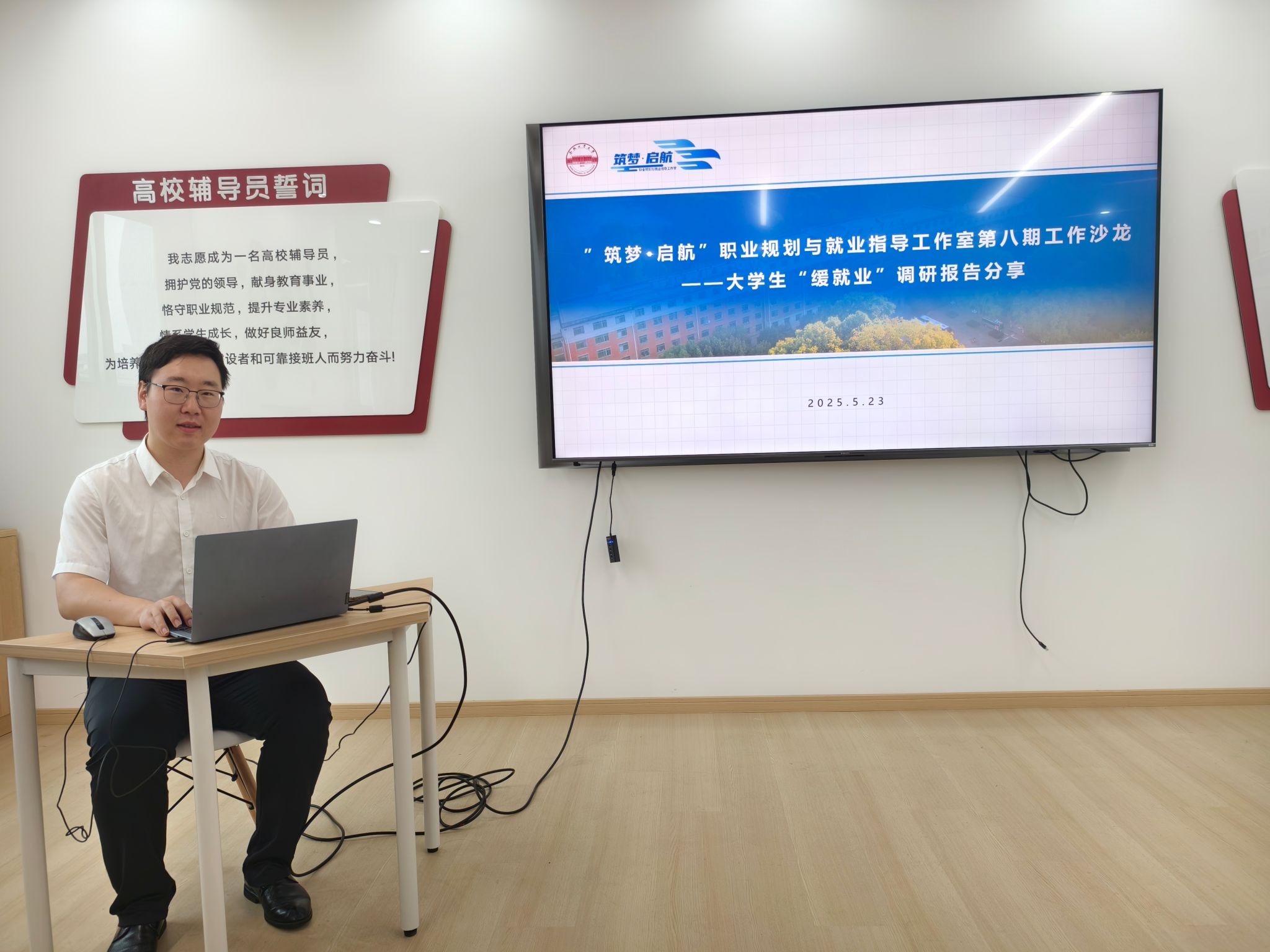 5月23日上午,校党委学生工作部(处)“筑梦·启航”职业规划与就业指导工作室在校辅导员发展中心举办第八期工作沙龙。工作室负责人、365电子娱乐官方网站党委副书记兼纪委书记李艳主持、工作室成员参加本次沙龙。活动伊始,365电子娱乐官方网站王哲贤老师以“大学生“缓就业”调查报告分享”为题,结合大学生“慢就业”现象和调查问卷结果,立足成因分析、应对策略,围绕“社会-高校-家庭-个人”四维因素展开分享,强调要引导大学...