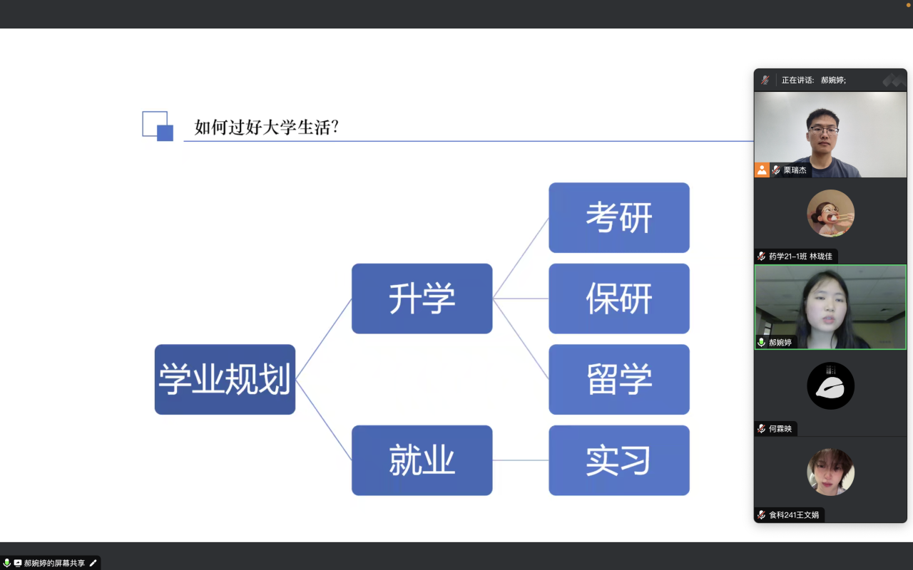 8月29日晚,365电子娱乐官方网站线上开展2024级新生“朋辈领航,赋能启航”榜样力量分享交流会,旨在帮助新同学汲取成功经验,尽快适应新的大学生活,顺利开启人生新征程。2019级、2020级和2021级优秀校友和学生代表受邀分享,辅导员栗瑞杰主持。2019级本科生郝婉婷同学介绍了自己在大一明确目标后,如何一步一步激励自己持续进步,成功保研清华。她聚焦于学习,鼓励同学们在学好专业知识的基础上汲取图书馆的养分,不断扩大自己...